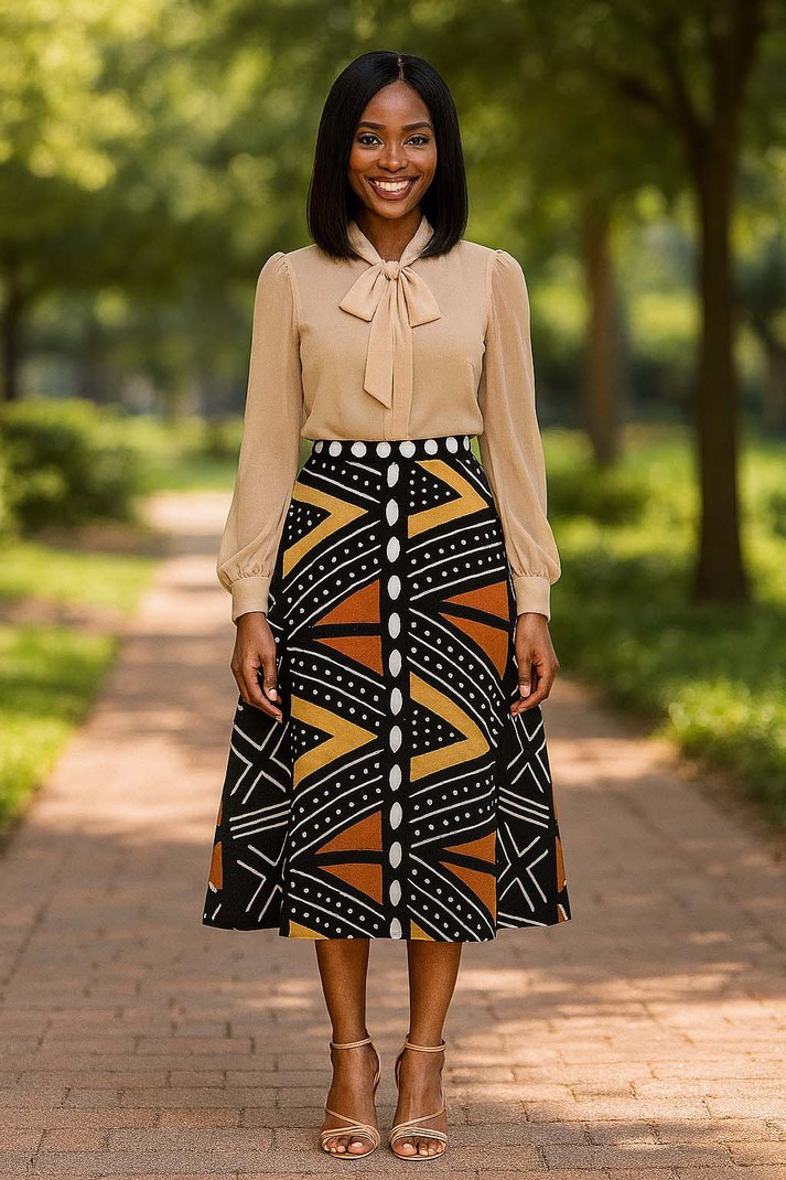 Awaken your inner adventurer with our Cowrie Print African Traditional Skirt! This daring midi length skirt features a bold and vibrant cowrie print, perfect for adding a touch of culture and excitement to your wardrobe. Embrace the boldness and take on the day in style!