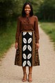 Embrace adventure in our Cowrie Print African Tribal Skirt! Featuring a unique cowrie print and midi length style, this skirt adds a bold and daring touch to any outfit. Perfect for those who love to take risks and stand out from the crowd. Unleash your inner explorer!