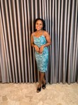 The crystal dress features delicate straps that accentuate your shoulders and collarbones, while the fitted design highlights your curves and adds a touch of femininity to your look. The back slit adds a flirty touch and allows you to move with ease, making it the perfect choice for dancing the night away.