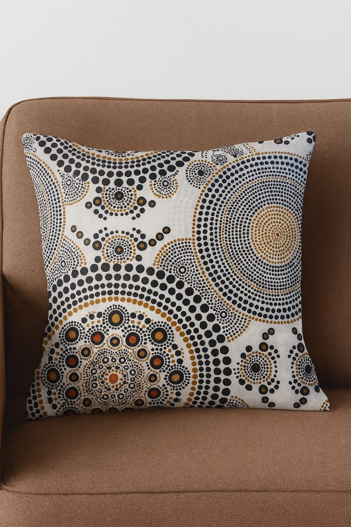 Inspirée des arts graphiques africains, cette housse de coussin au motif circulaire parfaite pour apporter du caractère à votre déco.