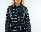 This indigo print shirt dress combines timeless elegance with everyday comfort. Designed with a classic collared neckline, fitted bodice, and a full pleated midi skirt, it flatters every silhouette while allowing effortless movement. The striking blue geometric pattern is digitally printed for a vibrant finish that won’t fade with washing, giving you long-lasting color and quality.