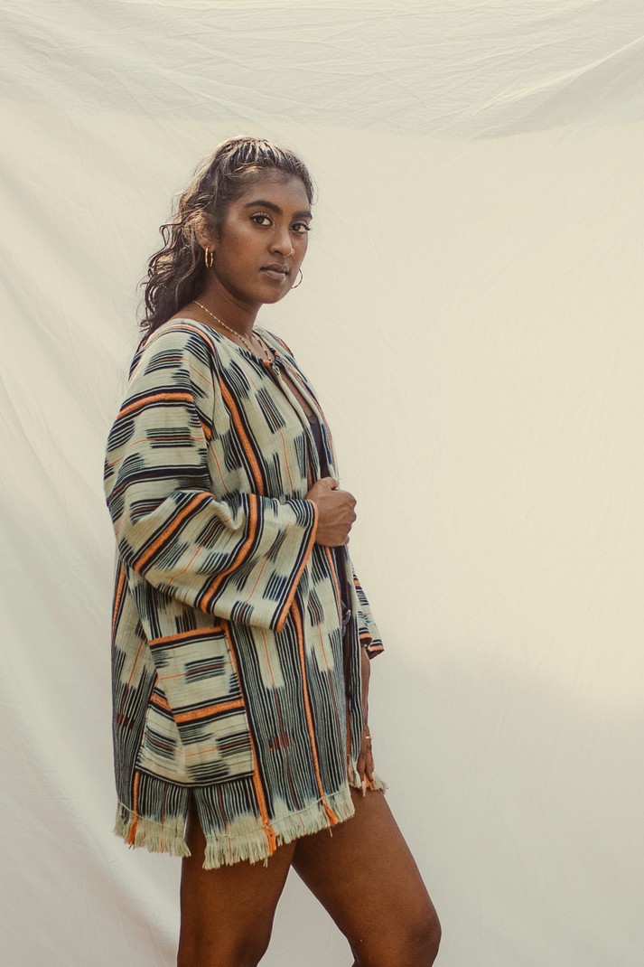 This cloak was made using baulé from C'ôte d'Ivoire and is part of our sustainably sourced & produced collection of progressive pieces. Handmade in Ghana by Ghanaian artisans, specially for you.