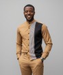 The Desert Block Set is a coordinated two-piece ensemble that offers sophisticated, modern style without compromising comfort. Featuring a crisp long-sleeve shirt and perfectly matching slim-fit trousers, this look is defined by its warm camel/tan hue and striking asymmetrical color-block design. It's the ideal choice for business casual offices, formal social events, or semi-traditional occasions. Key Features: Style: Coordinated Long Sleeve Shirt and Trousers Set. Fit: Modern Tailored Slim Fit for both the shirt and trousers. Color Palette: Warm Camel / Tan Brown for the majority of the set, contrasted with Black and Striped panels on the shirt. Shirt Design: Collar: Neat, upstanding Mandarin Collar (Band Collar). Color Block: Features solid Camel/Tan, a solid Black vertical panel, and a central Grey/White vertical striped panel. Sleeves: Long sleeves with structured cuffs. Trousers: Flat-front, slim-fit dress pants. Perfectly color-matched to the main fabric of the shirt. Material: High-quality Fabric Blend offering a smooth finish and excellent structure. Occasion: Business Casual, Formal Casual Events, Church, Special Dinners, Photo Shoots. Why You'll Love It: Effortless Coordination: The matching pants and shirt create an instantly polished, monochromatic suit look. Unique Design: The asymmetrical color and pattern blocking provides an architectural, fashion-forward statement. Warm Tones: The rich camel/tan color is sophisticated, flattering, and a stylish alternative to traditional gray or navy. Contemporary Comfort: The comfortable fabric and clean Mandarin collar make it easy to wear all day without needing a tie. 📐 Custom-Made Service This stylish set is available as a custom-made two-piece, ensuring the perfect fit for your body. Please provide the following measurements to guarantee a flawlessly tailored garment. Where to Measure: Neck: Measure around the base of your neck where the shirt collar sits. Chest: Measure around the fullest part of your chest, under the arms. Shoulder Width: Measure straight across the back from the tip of one shoulder bone to the tip of the other. Sleeve Length: Measure from the shoulder seam/tip down to the cuff. Trouser Waist: Measure around your natural waistline. Trouser Length: Measure from the top of the waistband down to the desired hem length. Hips/Seat: Measure around the fullest part of your hips and rear. Height: Your total height from the top of your head to the floor. Send your measurements after purchase to begin the custom tailoring process.