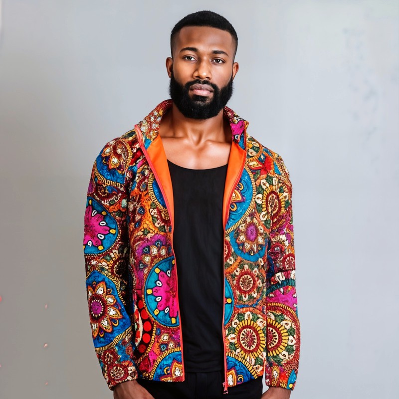 Magnifique blouson Bomber à motifs avec un superbe mélange de couleurs. La veste présente des motifs audacieux pour faire une déclaration partout où vous allez. Le bomber est parfait pour les mois les plus frais et vous gardera au chaud. Caractéristiques : - 100 % coton - Tissu imprimé wax ankara de haute qualité - Confortable - Excellente solidité des couleurs Instructions d'entretien : Lavage à la main ou nettoyage à sec. Utilisez un détergent doux. Ne pas javelliser. Suspendre pour sécher. Presser avec du fer froid.