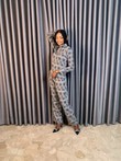 The ultimate 2-piece shirt and palazzo pants set. Designed with both style and comfort in mind, this loungewear set is the perfect balance of chic and cozy. Whether you're lounging at home, catching up on your favorite shows, or simply enjoying some well-deserved me-time, Dinma set will keep you looking and feeling your best. Don't wait, add this stylish and comfortable set to your loungewear collection today! Dress Highlights: ● Long sleeve buttoned down shirt ● Long loose fit pants ● Elastic band trouser waist line for easy fit ● Double collar ● 2 side pockets on pants Care Instruction: Gentle machine or hand wash (Do not bleach)