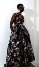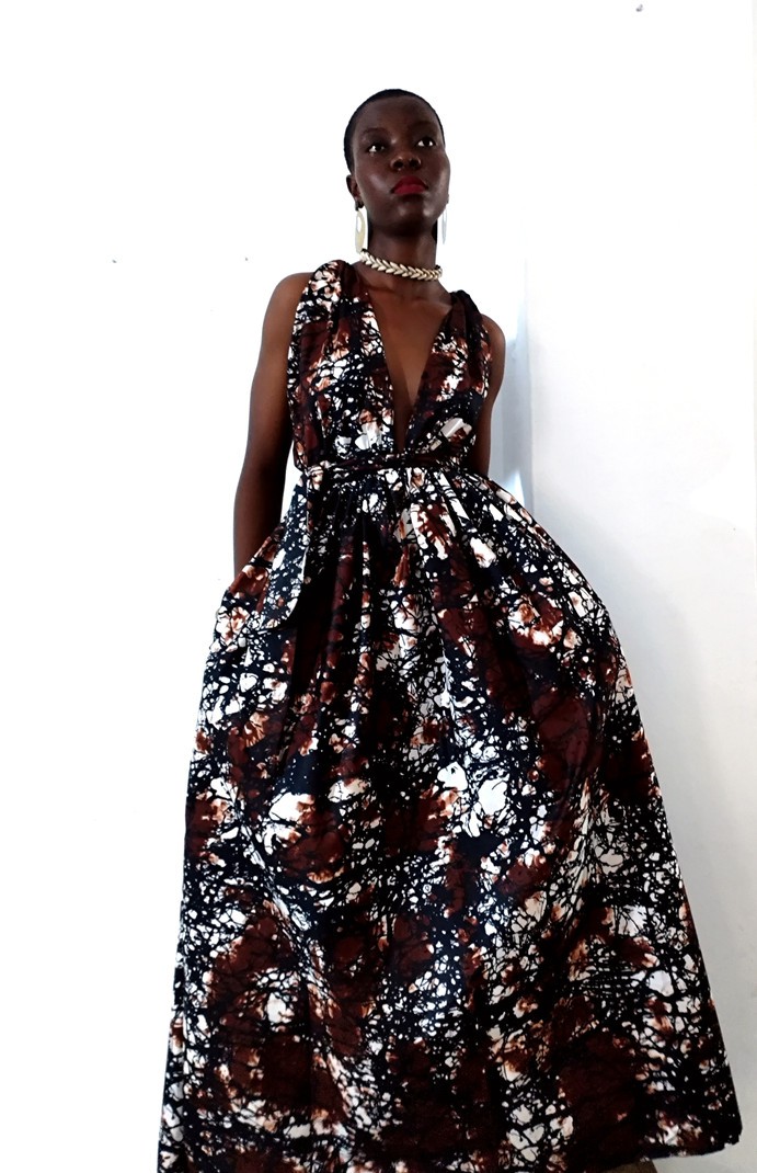 This dress is a majestic and modern piece that embodies natural elegance with a touch of revisited tradition. It is a long dress with an empire cut, fluid and loose, marked at the waist to elongate the silhouette. It is made of a black fabric adorned with long white vertical stripes formed by irregular circular patterns. These patterns create a dynamic visual effect, both graphic and ethnic, evoking a style inspired by batik or bogolan revisited in a contemporary way. The top features a deep V-neckline with wide straps that leave the shoulders bare, adding sensuality and power to the look. The volume of the skirt, very full, brings a dramatic and graceful effect to each movement. Combined with imposing gold accessories (bracelets and geometric earrings), the dress asserts an Afro chic style, both timeless and bold. Important information “Please note that customs duties, taxes, or import charges may apply depending on your country's regulations. These costs are the buyer's sole responsibility. We kindly advise you to check with your local customs office before placing your order. Unfortunately, we are unable to intervene in customs processes or assume responsibility for any related charges or delays.” “Please note that customs duties, taxes, or import charges may apply depending on your country's regulations. These costs are the buyer's sole responsibility. We kindly advise you to check with your local customs office prior to placing your order. Unfortunately, we are unable to intervene in customs processes or assume responsibility for any related charges or delays.” Thank you so much!!!