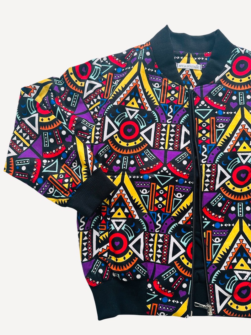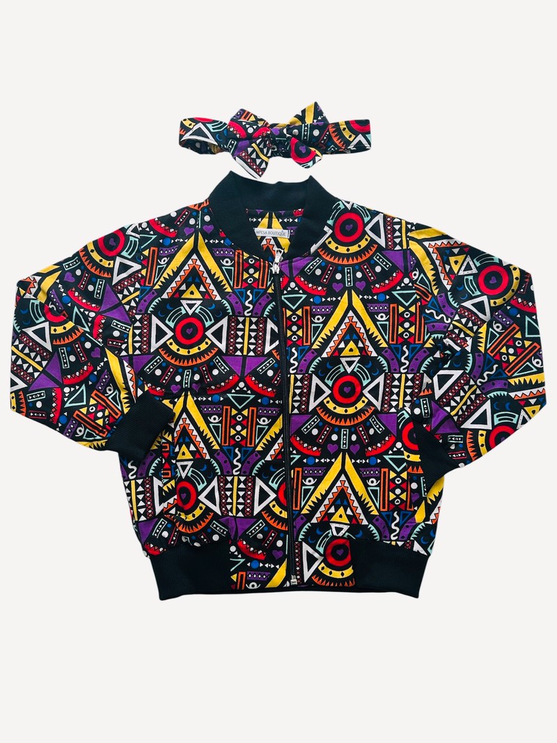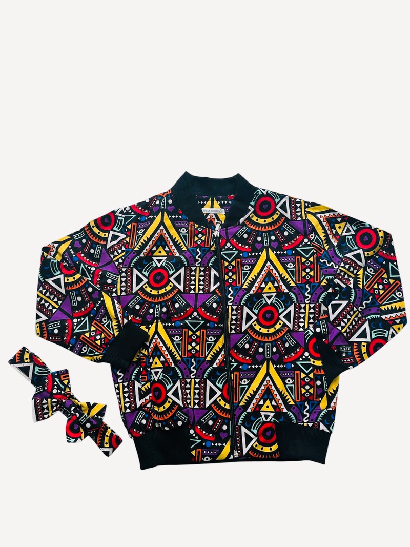 Ce bomber en wax est accompagné d’un bandeau assorti , à porter pour un style chic et décontracté. Idéal pour les cérémonies, anniversaires , ou simplement pour affirmer un style unique au quotidien.