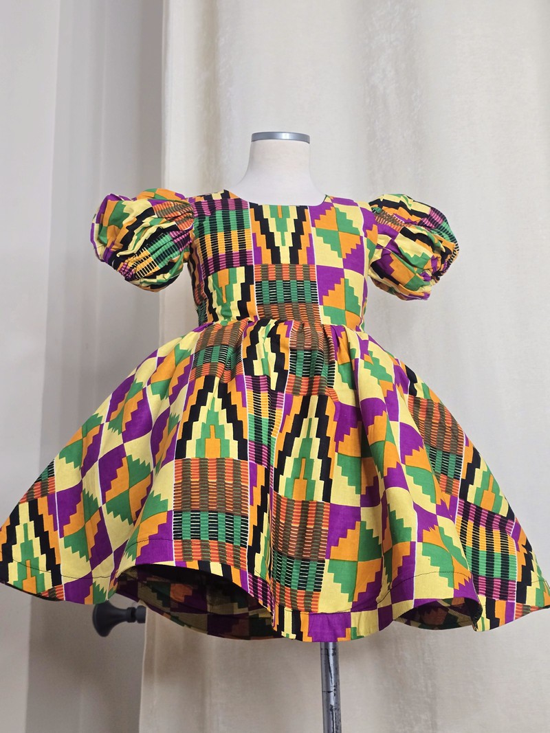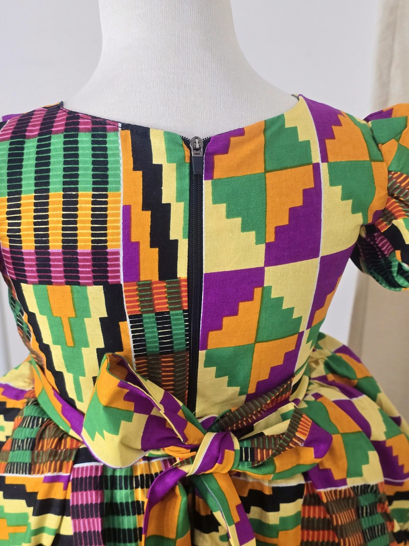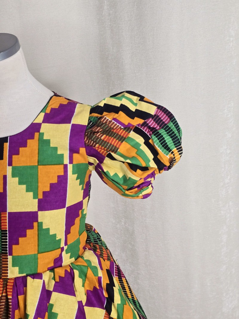 Robe en tissu africain fabriquée au Nigéria. La robe Ife est confectionnée en tissu Kente 100 % coton.