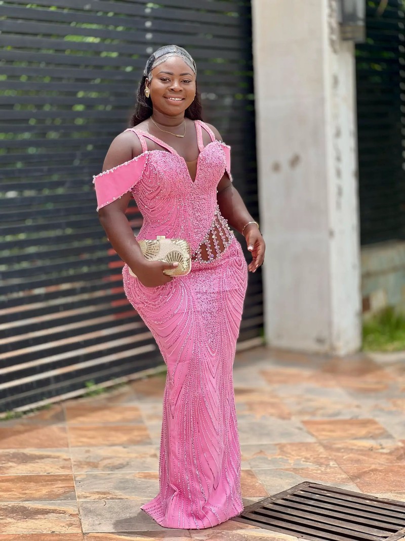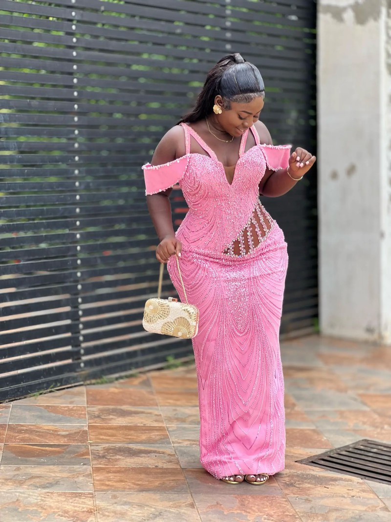 Turn heads at every event with this stunning beaded lace dress designed exclusively for stylish and confident women. Crafted with delicate lace and adorned with intricate beadwork, this dress brings a perfect blend of sophistication and glamour. The flattering silhouette hugs your curves while providing comfort, making it ideal for weddings, receptions, cocktail parties, engagements, church programs, and other special occasions.