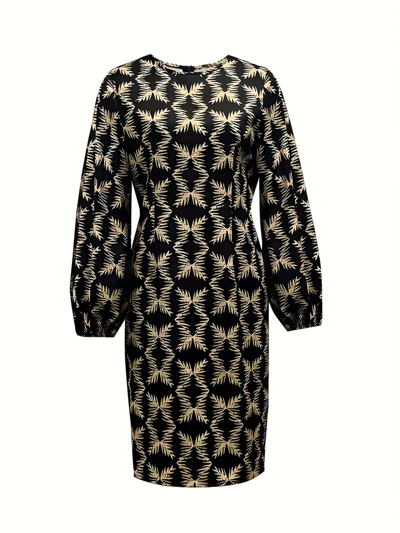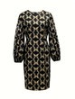 Elegant Geometric Print Long Sleeve Bodycon Dress