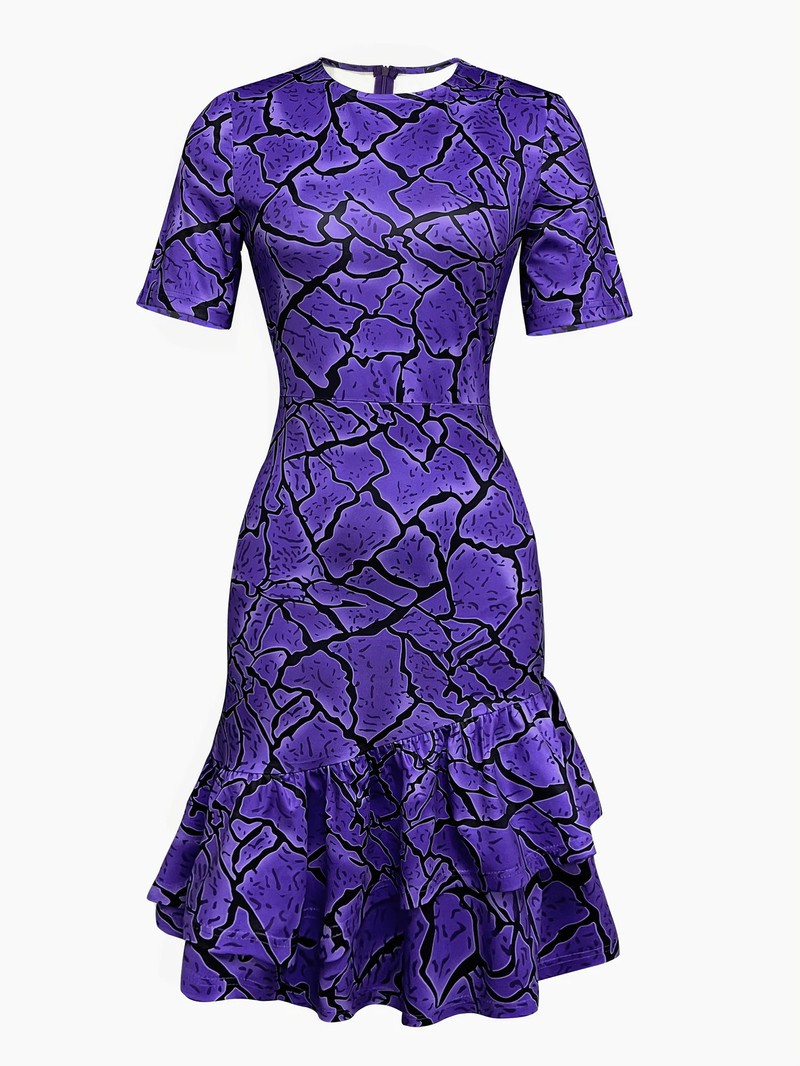 Elegant Geometric Print Long Sleeve Bodycon Dress