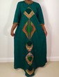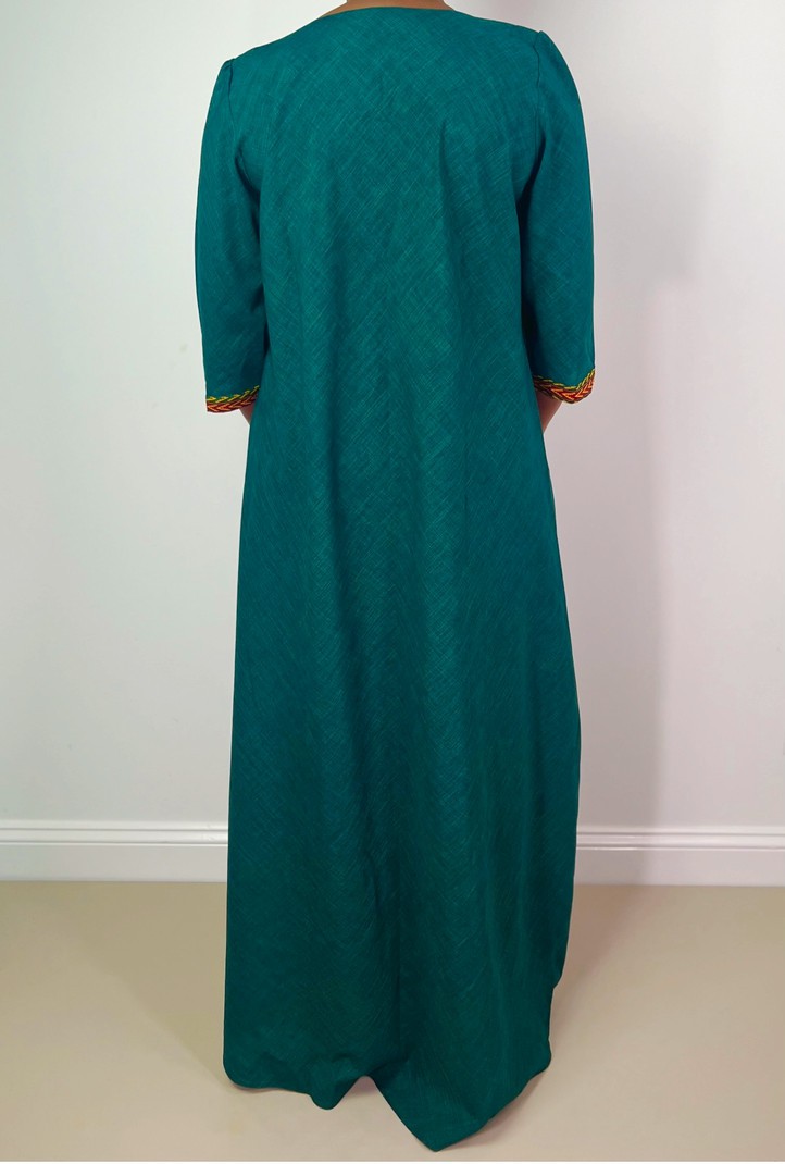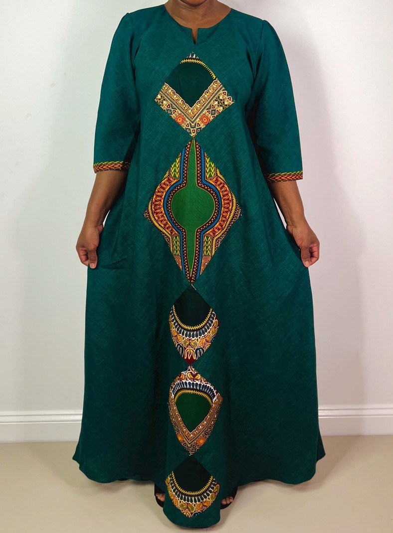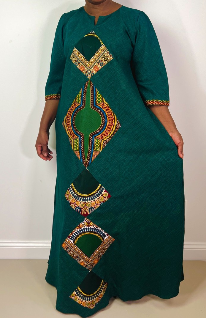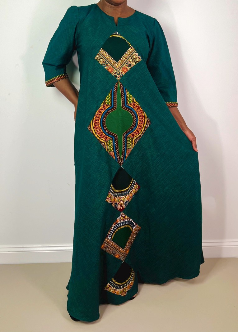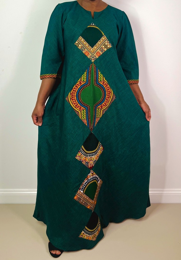 Elegant Green tribal patchwork design oversized Maxi kaftan dress