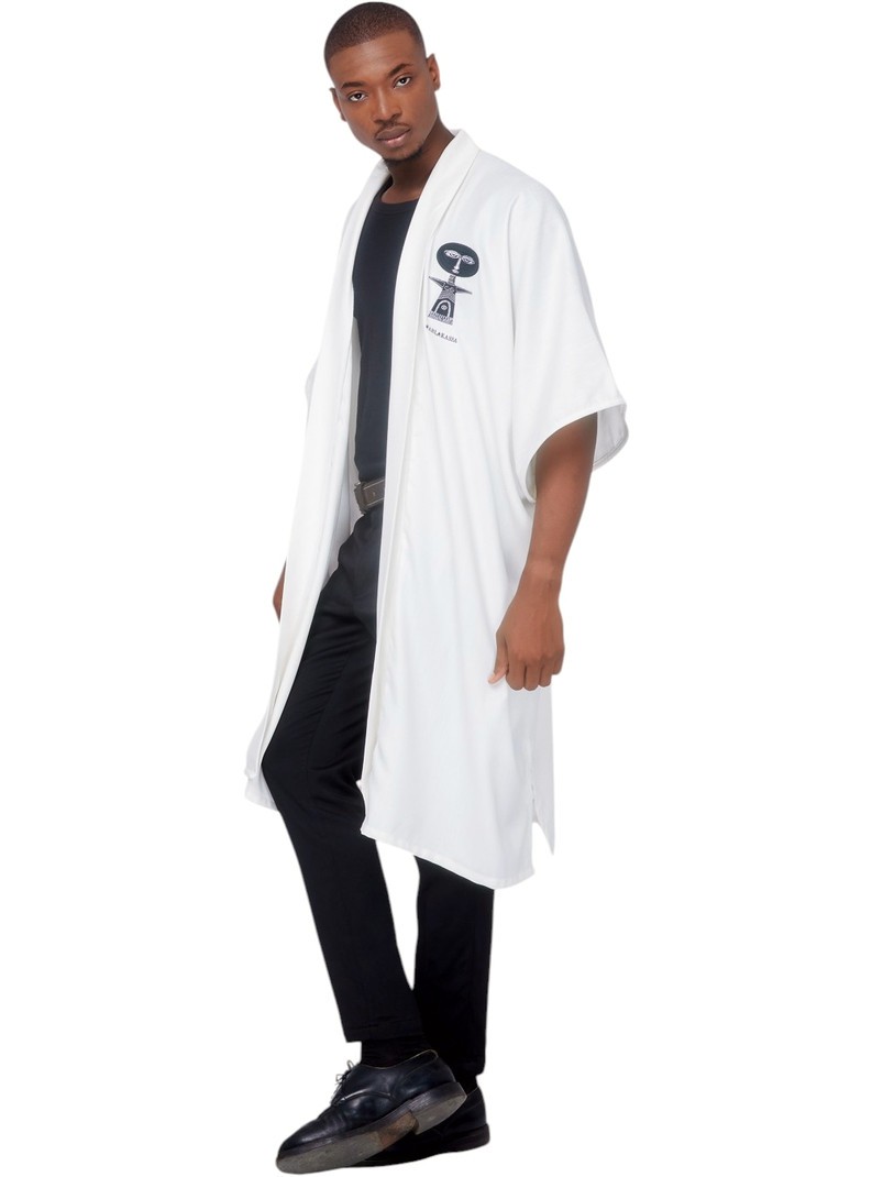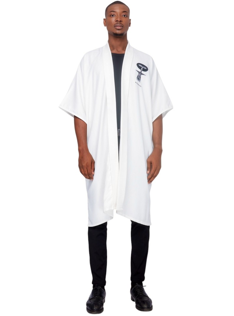Elevate your look with the "Guardians" kimono – a bold fusion of tradition and streetwear. Crafted in airy, textured cotton with a relaxed oversized fit, this unisex kimono features powerful embroidered African mask and Adinkra motifs on the back and the front, symbolizing ancestral strength and protection. Once work, you will not want to take it off. It flows with ease from day to night, perfect for expressing rooted identity with a modern twist. Culture never looked this effortless.