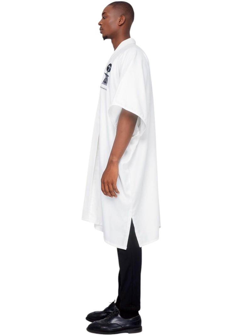Elevate your look with the “Guardians” kimono – a bold fusion of tradition and streetwear. Crafted in airy, textured cotton with a relaxed oversized fit, this unisex kimono features powerful embroidered African mask and Adinkra motifs on the back and the front, symbolizing ancestral strength and protection. Once work, you will not want to take it off. It flows with ease from day to night, perfect for expressing rooted identity with a modern twist. Culture never looked this effortless.