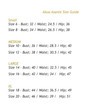 | Int | Tour de poitrine (incm) | Tour de taille (incm) | Tour de hanche (incm) | EU | UK | US |