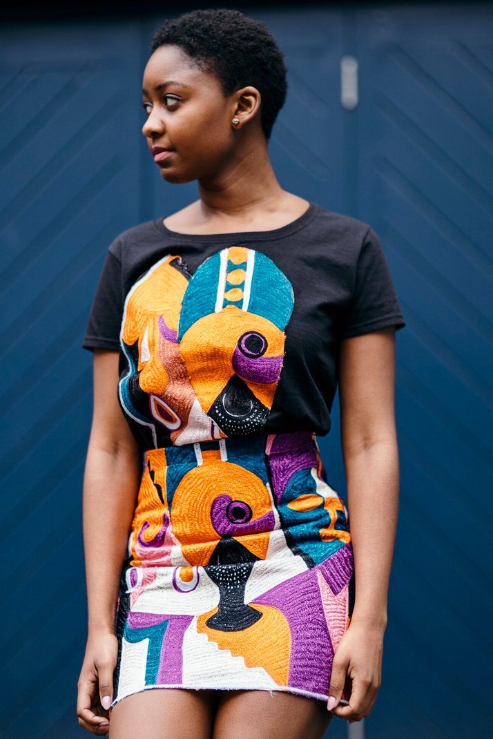 Embroidered t shirt paired with a full embroidered skirt. Outfit can be worn separately. Made to order. Dry clean only. Sizes Available: UK(S)-UK(XL)