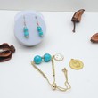 Ensemble Bracelet et boucles d'oreilles ajustable en perles naturelles Bleu.