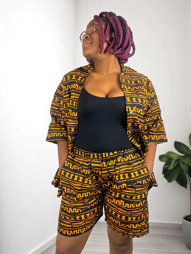 Apportez une touche de modernité et de style à votre garde-robe avec cet ensemble deux pièces aux couleurs éclatantes et aux motifs originaux, en coton wax, pensé pour allier confort et élégance au quotidien grâce à sa coupe simple, légère et élégante.