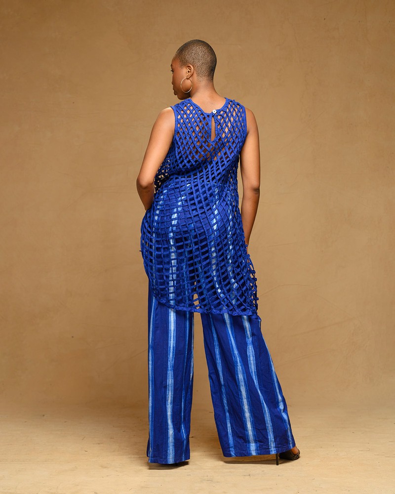 Ensemble robe tissé en grillage plus pantalon dans en coton.