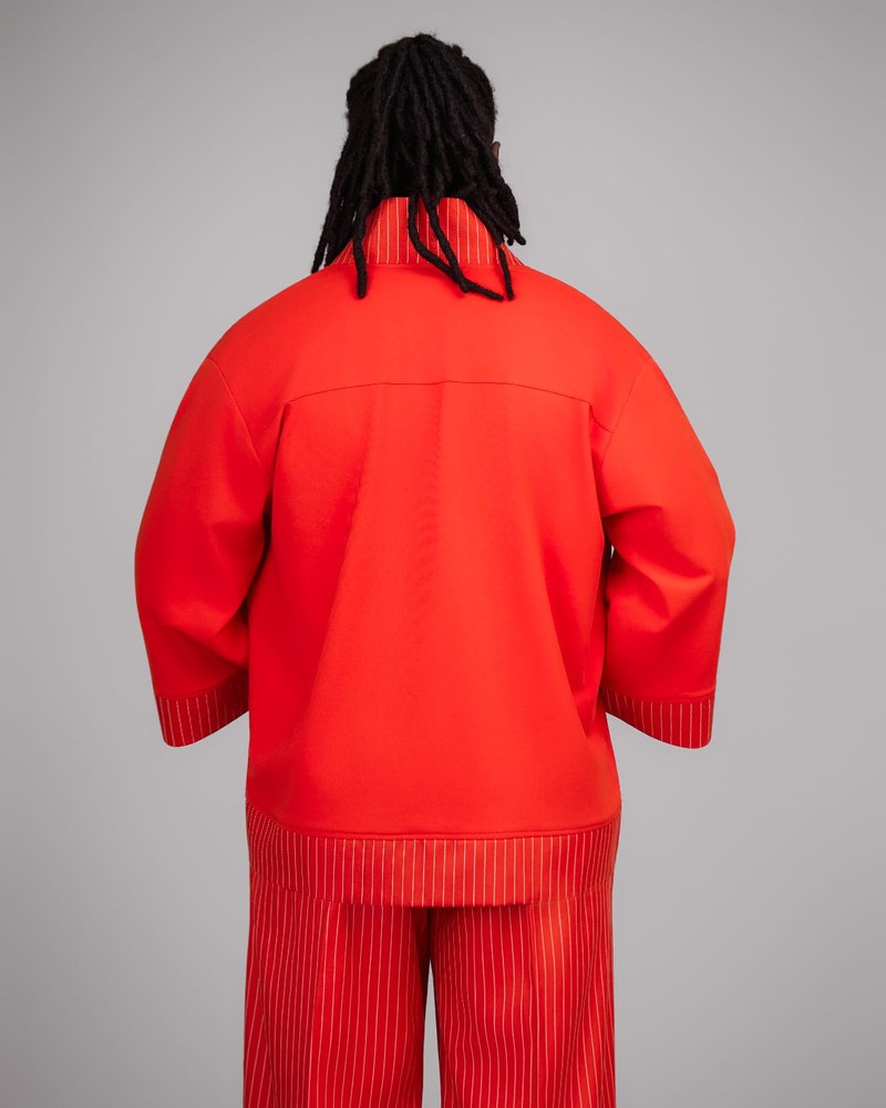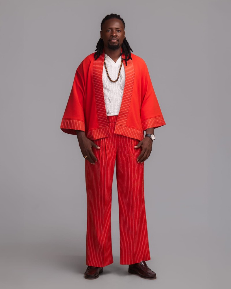 L’ensemble “Flamme Urbaine” incarne l’énergie et la confiance propres à la saison estivale selon XƆVI. Conçu dans un rouge éclatant rehaussé de fines rayures ton sur ton, il allie audace et élégance. Le kimono léger et le pantalon fluide composent une silhouette à la fois vibrante et maîtrisée.