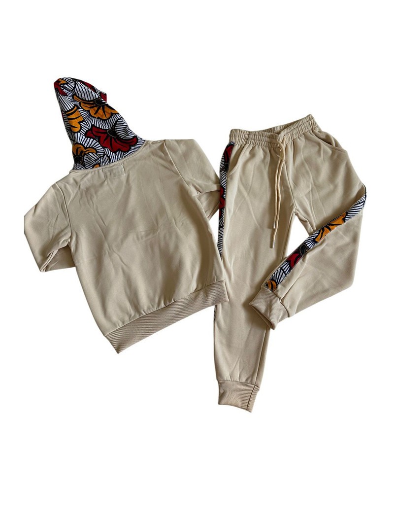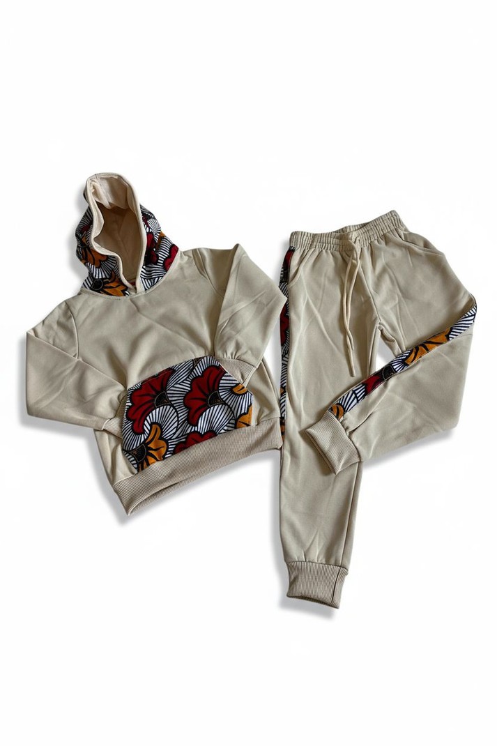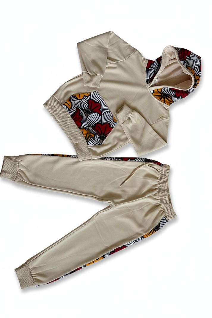 Craquez pour notre ensemble jogging beige fait main , un incontournable du dressing afro moderne des enfants !