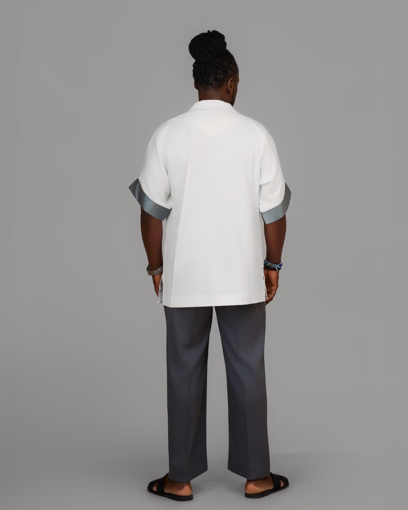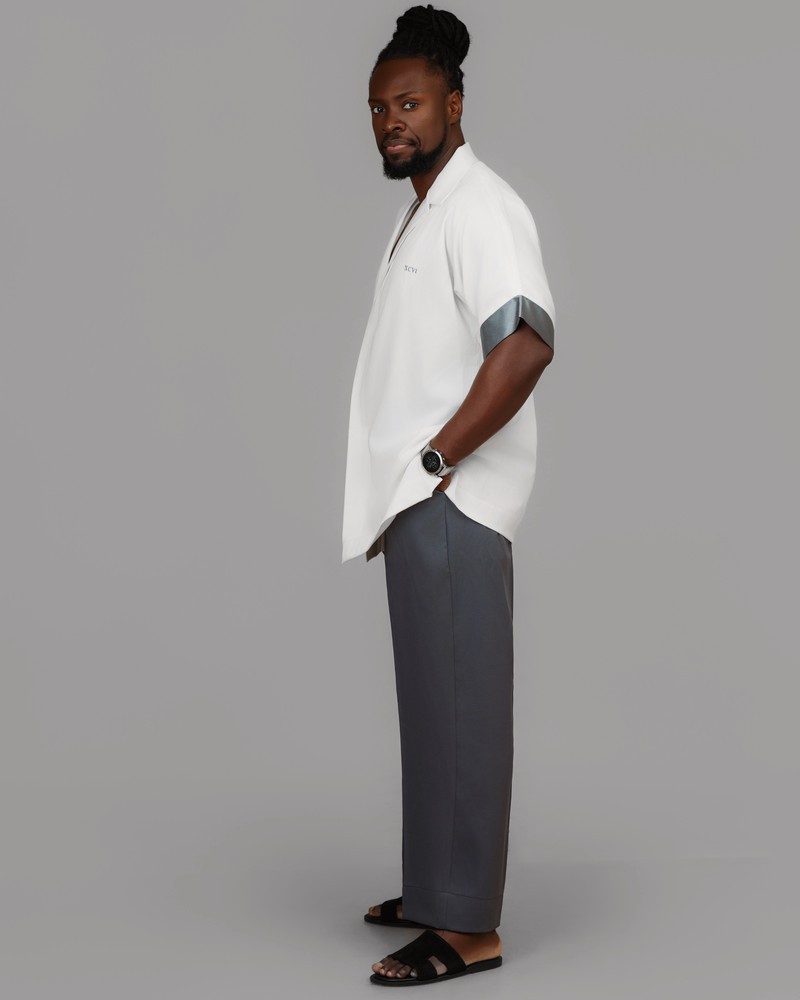 L’ensemble Sérénité Ébène incarne l’élégance apaisée et la confiance silencieuse. Confectionné dans des matières légères et raffinées, il associe la pureté du blanc à la profondeur du gris pour un équilibre parfait entre sophistication et décontraction.