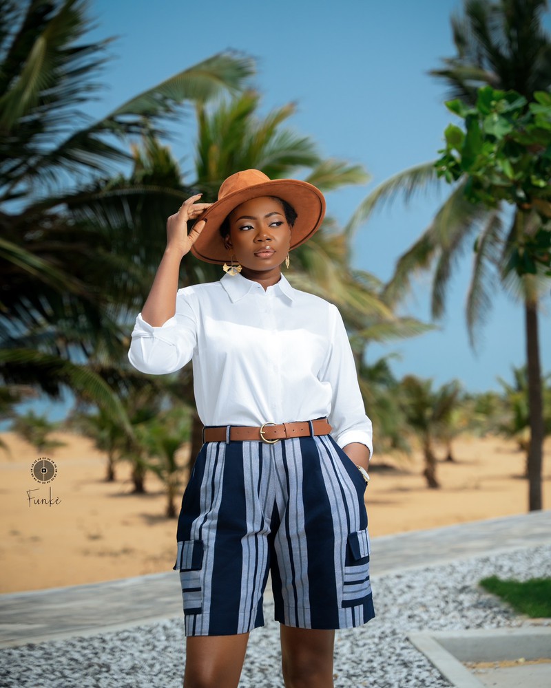 Entièrement en pagne tissé, avec son short stylé et sa sur chemise griffée FUNKÈ, cet ensemble est pratique et peut donner lieu à plusieurs superbes looks.