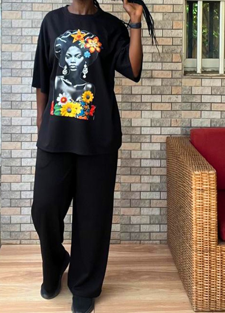 T-Shirt Top Manches Courtes+ Pantalon jogging Large Décontracté Sport Jogging