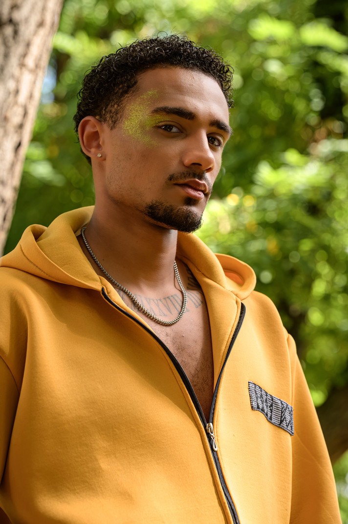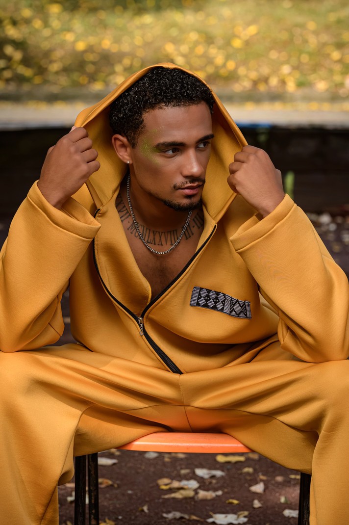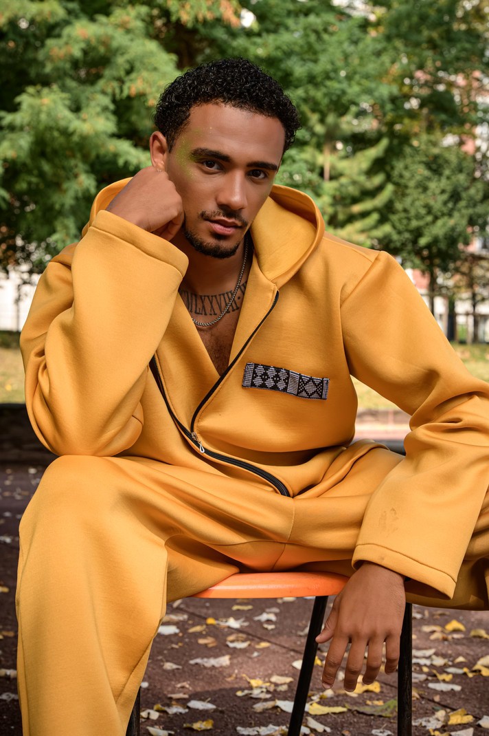 Alliez confort et identité avec cet ensemble survêtement homme en tissu matelassé, rehaussé de touches raffinées en pagne tissé. Sa coupe moderne et sa teinte jaune lumineuse en font une pièce urbaine et originale.