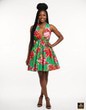 Turn heads in this vibrant tropical mini dress, featuring a lush green base with bold red and pink floral prints. The sleeveless halter design and flared skirt create a flattering, breezy silhouette perfect for warm weather. Ideal for summer parties, vacations, or beach outings, this dress brings fresh island energy wherever you go. Material: crepe Color: Multicolor