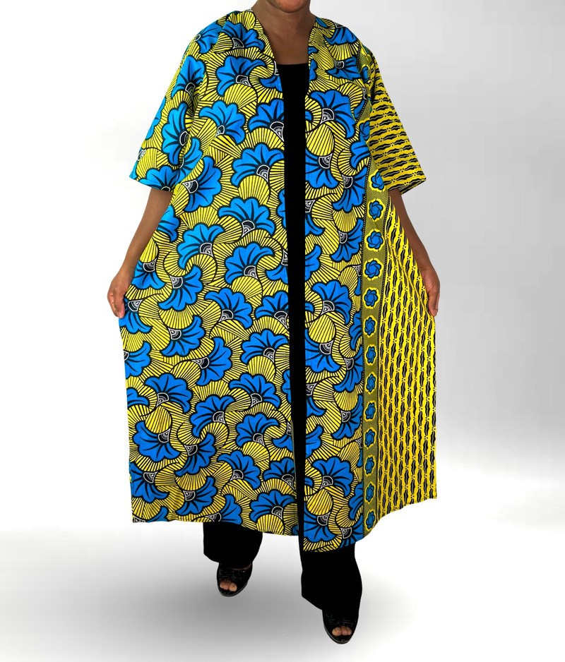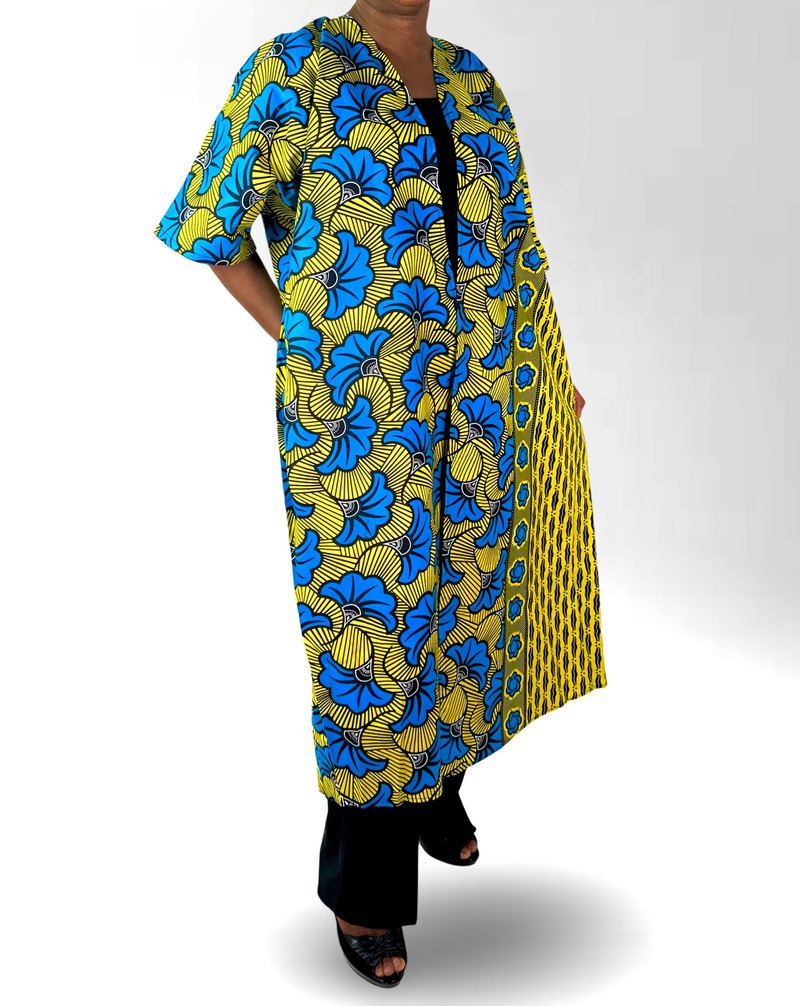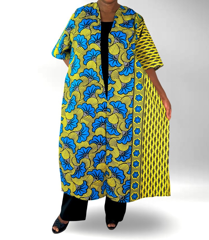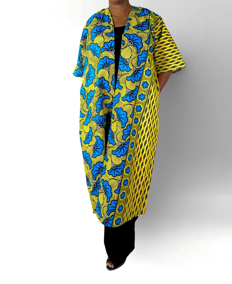 Floral print Green Multicolor African Print Ankara Maxi Beaded Open Back Cardigan