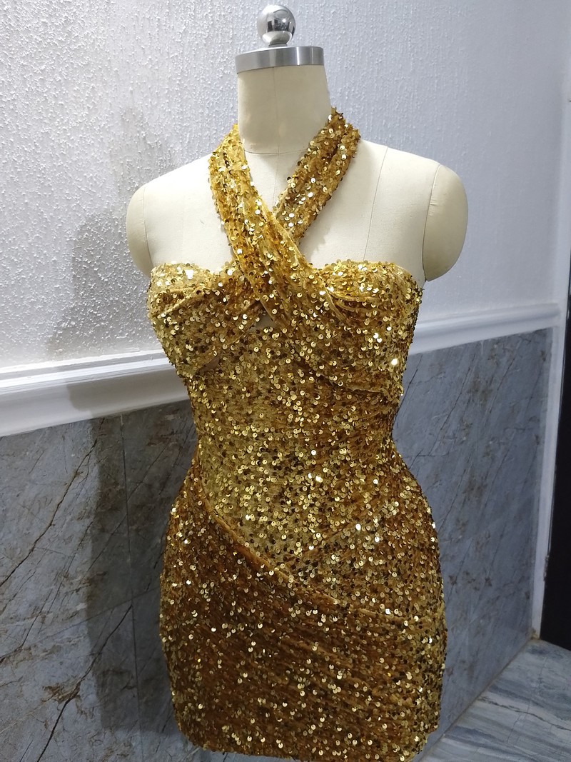 Gold sequin short party dress