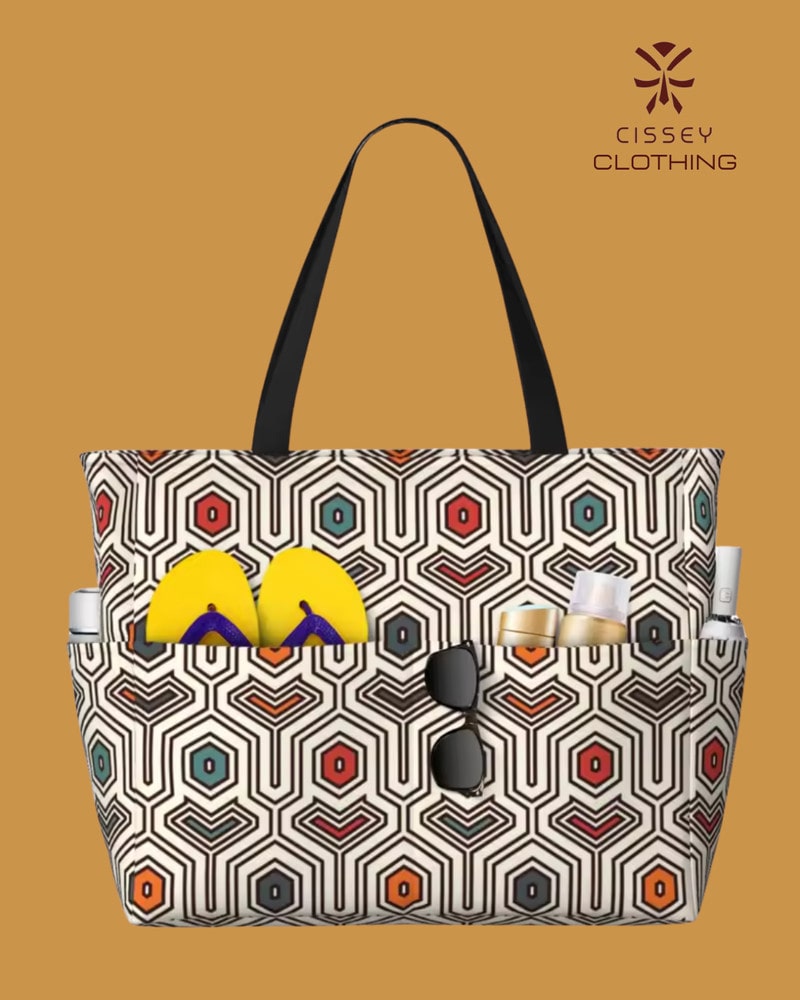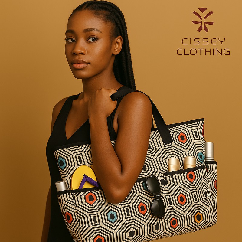 Show off your style with this large wax-style beach bag by Cissey Clothing – perfect for summer outings, seaside getaways, or relaxing days.