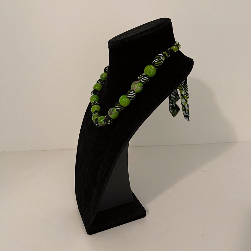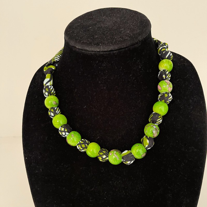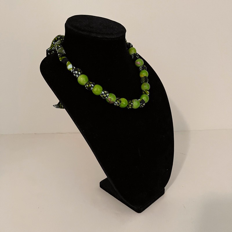 African Print Ankara Handmade Layered Necklace, Earring, and Bracelet Jewelry Set - Handmade with cotton ankara fabric - Necklace has button clasp closure