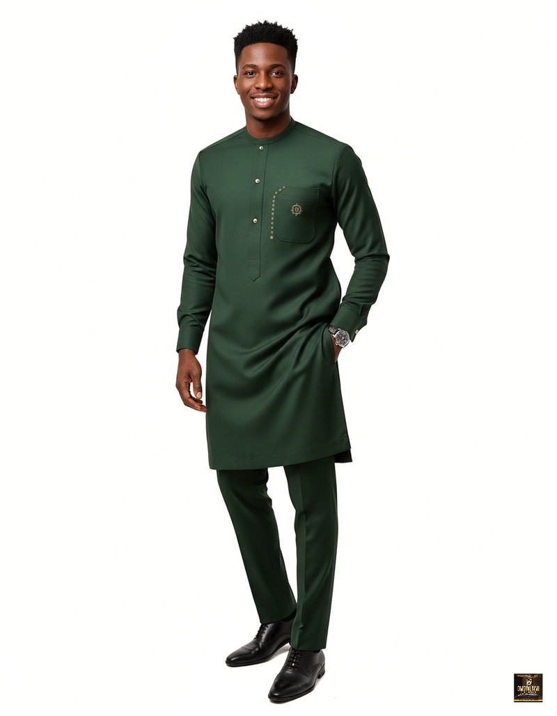 Stay effortlessly stylish in this green senator outfit, designed for the modern man who values class and culture. Crafted from smooth, durable fabric, this two-piece senator suit features elegant embroidery on the chest pocket and placket, giving it a refined finish. Perfect for formal events, business gatherings, church services, and casual celebrations, this senator style offers the right balance of simplicity and sophistication. Soft and comfortable premium fabric Stylish embroidery accents Tailored fit for a clean, modern silhouette Ideal for both formal and semi-casual occasions Style Tip: Pair with black dress shoes and a wristwatch for a sharp, confident look.