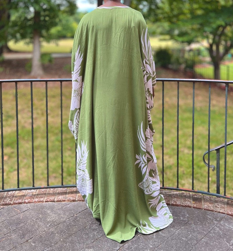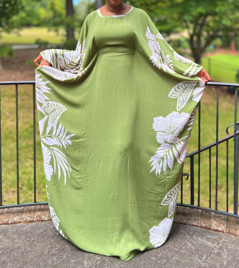 Green Tropical Floral Print oversized Maxi kaftan dress