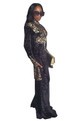 A gorgeous sequin fabric is used to design the shoulders, bust and navel areas.