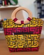 Sac Wax Jaune & Rouge – Motif Ethnique, Poignée Bois