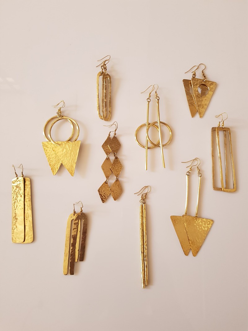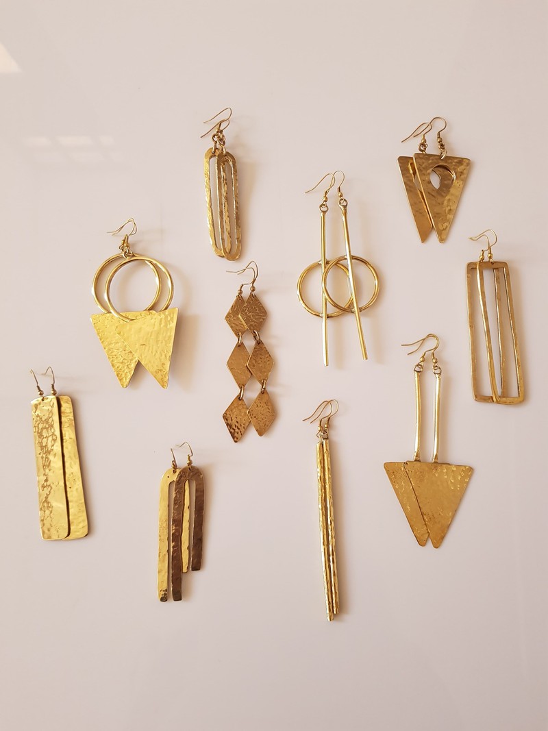 Handcrafted Brass Earrings – Timeless Elegance with a Modern Twist Add a touch of artisanal charm to your look with these beautifully handcrafted brass earrings. They are designed to make a subtle statement, each pair is made from high-quality solid brass, offering a warm golden hue that complements any skin tone. The listing is for any 2 pairs of earrings. Features: Made from 100% solid brass – lead and nickel free Lightweight and comfortable for all-day wear Available in stud, dangle, or hoop style Handmade with care for a unique finish Perfect for everyday elegance or a special night out. These earrings make a thoughtful gift for birthdays, anniversaries, or just because. Care Tips: To maintain shine, gently polish with a soft cloth. Keep away from water and chemicals Each pair is made with care and attention to detail.