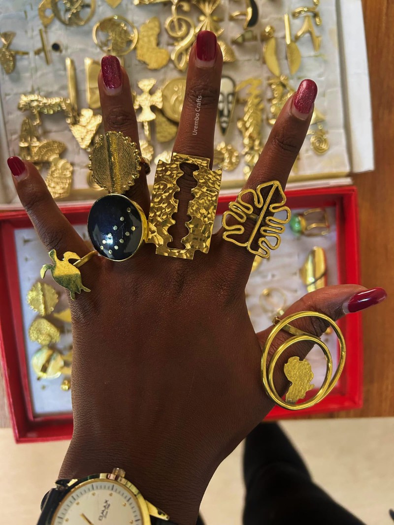Elevate your style with these stunning handcrafted brass rings meticulously made by skilled Kenyan artisans Each ring is a masterpiece of traditional craftsmanship, blending ,bold African aesthetics with timeless elegance.