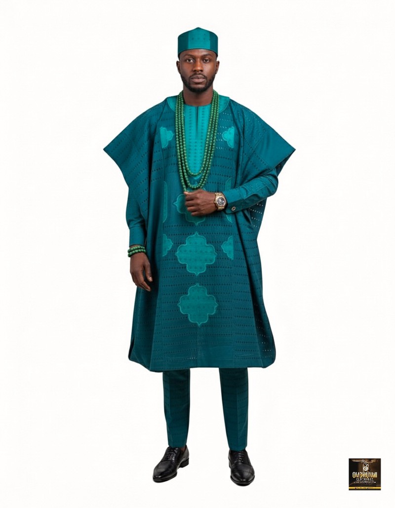 Make a bold statement with this luxury green agbada set, a perfect blend of tradition and modern sophistication. Expertly tailored from premium quality fabric, this three-piece outfit includes a long embroidered agbada robe, a matching inner top, and well-fitted trousers. The detailed embroidery adds a regal touch, making it ideal for weddings, traditional ceremonies, and special occasions. This outfit represents the essence of African men's fashion, offering both elegance and comfort for the stylish gentleman. Premium-quality, breathable fabric Exquisite embroidery detailing Comfortable tailored fit Suitable for weddings, engagements, and cultural events Style Tip: Complete the look with loafers or leather sandals and a matching cap for a royal appearance.