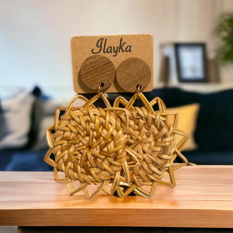 Chaque paire est pensée pour mettre en valeur la beauté brute du bois et la finesse du rotin tressé, avec une touche dorée discrète pour une finition raffinée . La Variation Géométrique présente des disques en bois associés à des pendants ovales en rotin clair, ornés d'une spirale minutieusement tressée . Idéale pour un look épuré et contemporain, cette version privilégie les lignes pures et l'harmonie des formes .