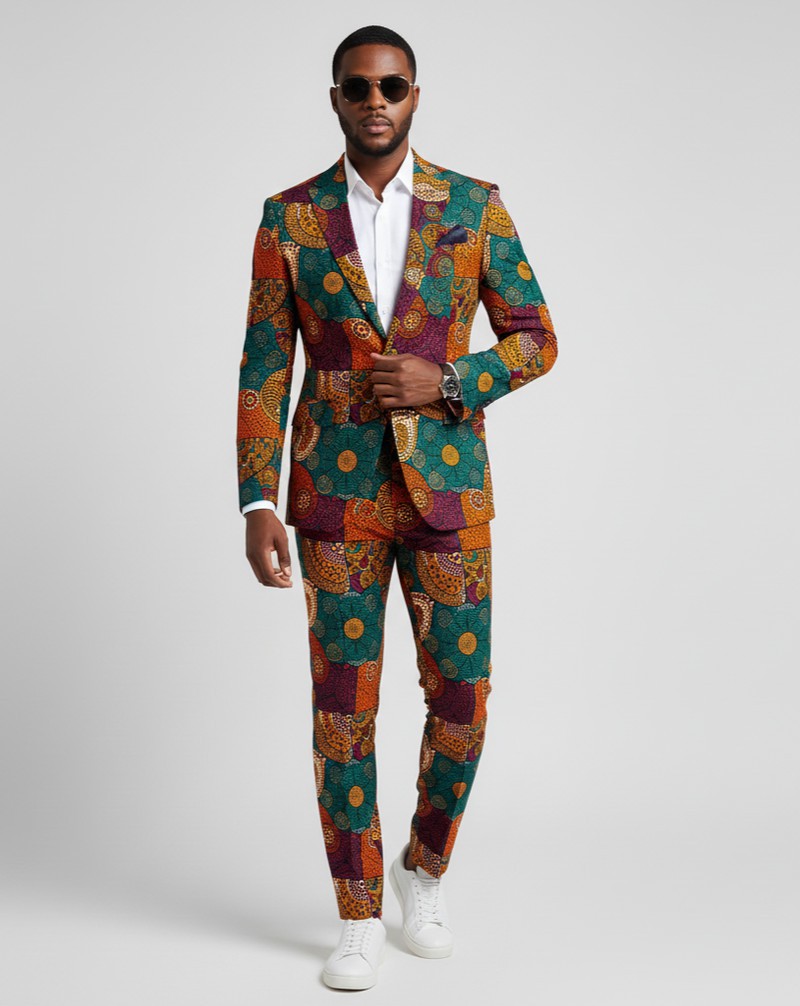 Style: Modern 2-Piece Suit (Jacket & Trousers) with African Ankara Print