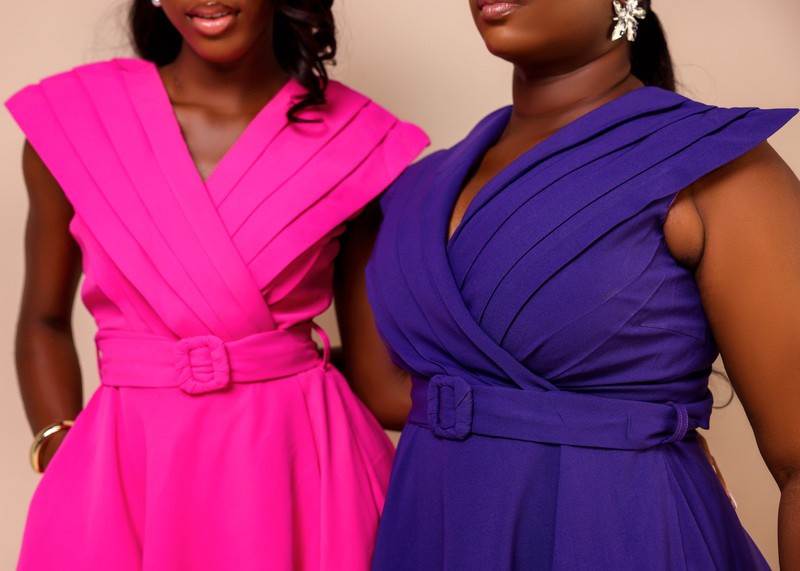 Ìfédayò: Love Turned Into Joy, The Rose Make a bold statement wearing the Ìfédayò dress. It's beautifully crafted from durable crepe fabric, with its full skirt and pleated bodice detail. Perfect for every corporate setting, whilst letting you also transition into evening meetings and lifestyle outings after your work day. The LUXTLEY Aṣọ Iṣé D’entreprise 'Corporate Wear' Collection showcases structured masterpieces that will tell the LUXTLEY LADYs story of feminine originality, poise and flair. Inspiring you to be elegantly graceful in your place of enterprise. Bloom, show up a bold, show up confidant, show up first lady. SIZE CHART Our standard sizes for ladies' apparel is UK sizing. Measurements in inches. Presentation: LUXTLEY corporate wear dresses come in a luxury presentation box or beautiful LUXTLEY gift bag. Each item is laid in signature white paper and sealed with a LUXTLEY teal foil label. Our gift boxes are beautifully made and make a wonderful keepsake box. PRODUCT DETAILS & GARMENT CARE Main Fabric: Crepe Fabric Belted, Faux-Wrap Dress Fully Lined Dry Clean Recommended Made in Nigeria WEIGHT 0.35 Kg SIZE & FIT Model's height 5'7 and 5'9 She is wearing size 14/18 and size 8 This style fits true to size We suggest ordering your normal size