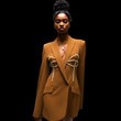 The Ischia Cocktail Blazer Dress is a modern masterpiece crafted from premium fabric. Its bold cutout, mini length, and functional yet sensual silhouette will make a bold statement. Each piece is finished with hand-embellished front details, providing a luxurious and sophisticated element. Make a statement in this exclusive, high-end dress. About Collection This is a collection of all the 'now' gone by and all the 'now' to come. It is an ode to the moment, and realization of the present and an acceptance of the now. The Here collection is inspired by six siblings forging their 'now' and thriving. This collection is dedicated to everyone lighting their stars with the precious gift of the present. Highlight of Design Fall/Winter 2023/2024 Here Collection Approximately 33'' dress length, regular fit Sensual bold back cutout Handmade front embellishment on bodice Functional blazer silhouette Modern flared sleeves Bold color options
