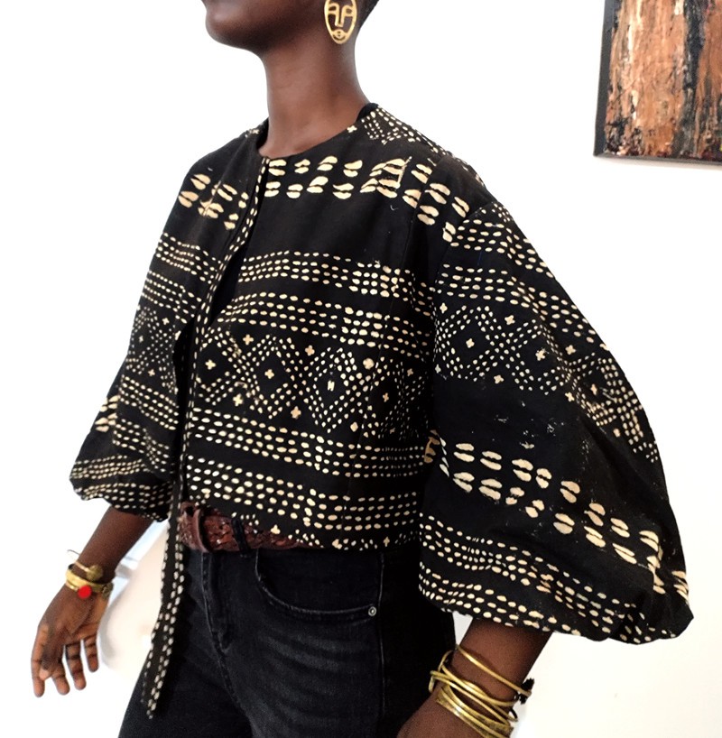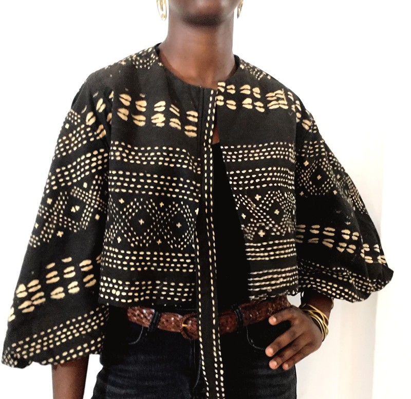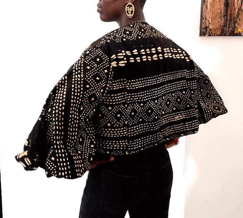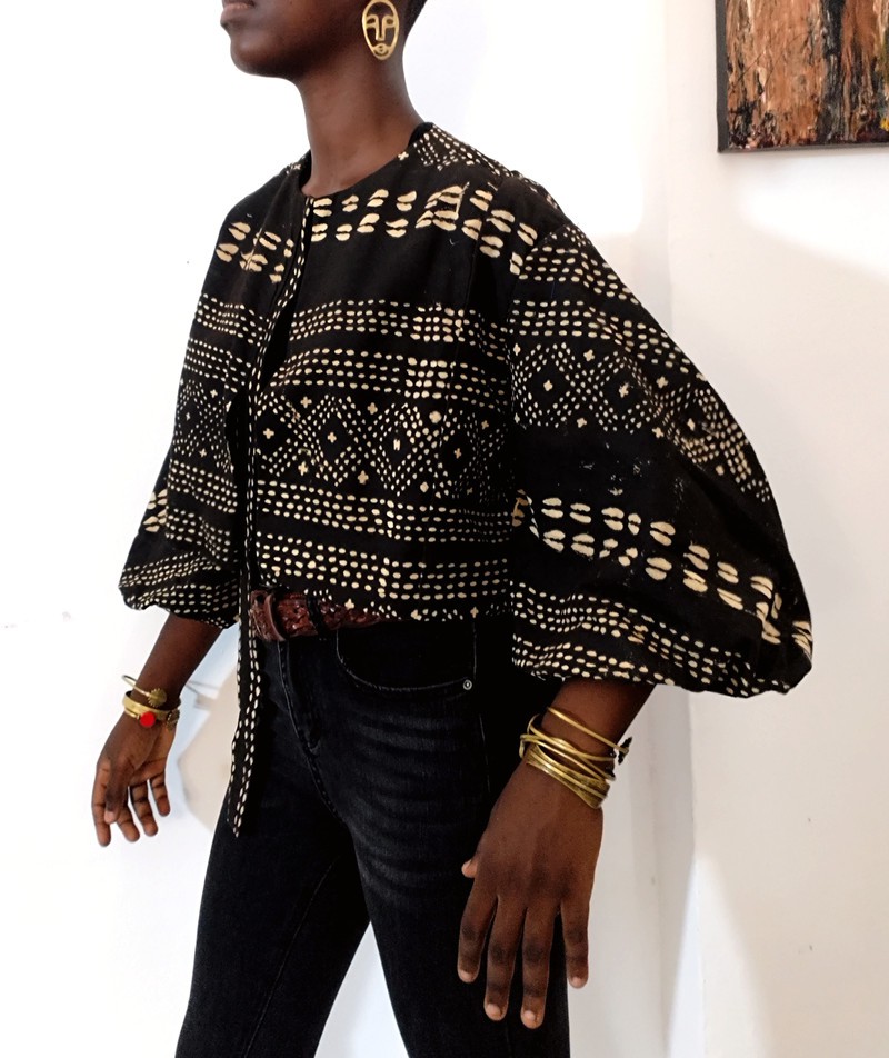 Jacket SISI Black and white patterns. The jacket features hand-painted geometric and abstract motifs, some reminiscent of African cultural symbols. Fine-textured cotton bogolan — an atypical version of bogolan, which is traditionally known for its thickness. Here, the bogolan is lighter, with a natural and refined feel. Loose, cropped cut, inspired by kimono or open jacket styles. Wide, three-quarter length, puffed sleeves A contemporary reinterpretation of bogolan — an artistic, bold, and unique piece that evokes African elegance and authenticity. Please note: This is a one-of-a-kind item. “Limited to one – no duplicates” You will receive exactly the jacket shown in the photo. Additional Details: Visible stitching enhances the handcrafted aesthetic of the jacket. Small imperfections are part of the charm and authenticity of traditional African craftsmanship. The color combination creates a look that is both natural and highly graphic. A true masterpiece. Important information “Please note that customs duties, taxes, or import charges may apply depending on your country's regulations. These costs are the buyer's sole responsibility. We kindly advise you to check with your local customs office prior to placing your order. Unfortunately, we are unable to intervene in customs processes or assume responsibility for any related charges or delays.” Jacket in bogolan (a traditional fabric from West Africa, particularly Mali). With black and white patterns. Patterns: The jacket is decorated with hand-painted geometric and abstract patterns. Some patterns recall African cultural symbols. Material: Bogolan cotton fabric but thinner and lighter, atypical for bogolan mainly known for its thickness. Loose and short cut, like a kimono or open jacket. Wide, puffed, three-quarter sleeves. Bogolan revisited in a contemporary way — an artistic, strong and unique piece that evokes African elegance and authenticity. Please note that this item is unique, you will receive exactly the image in the photo. The visible seams contribute to the artisanal aesthetic of the jacket. The small imperfections represent the authenticity of the craftsmanship in Africa. The combination of colors gives an effect that is both natural and very graphic. A true masterpiece. Important information “Please note that customs duties, taxes or import fees may apply depending on the regulations of your country. These charges are entirely the responsibility of the buyer. We kindly advise you to check with your local customs office before ordering. Unfortunately, we cannot intervene in customs processes or assume any resulting costs or delays.” Thank you very much and see you soon!