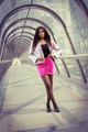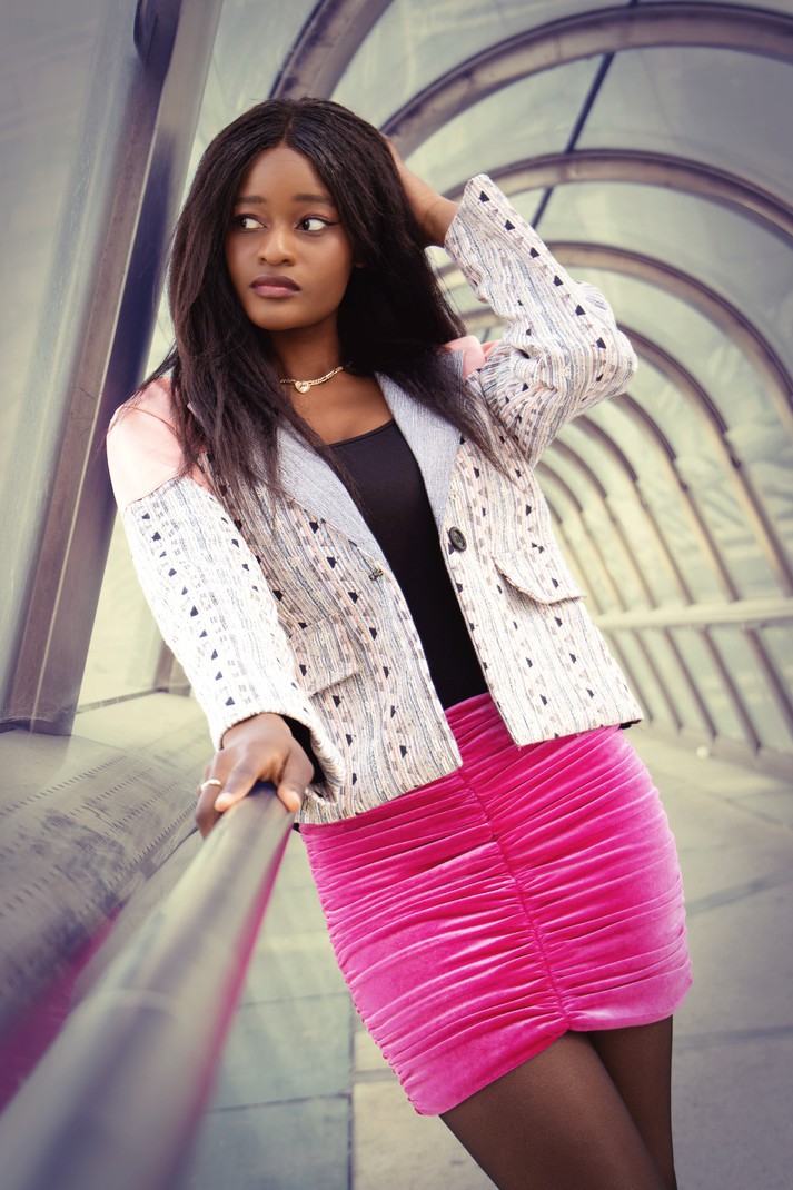 Son duo gris et rose poudré donne une allure moderne et féminine, parfaite pour le printemps, l'été ou les demi-saisons.
