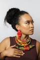 → 1 collier en tissu madras travaillé façon plastron ou ras-de-cou (à préciser)