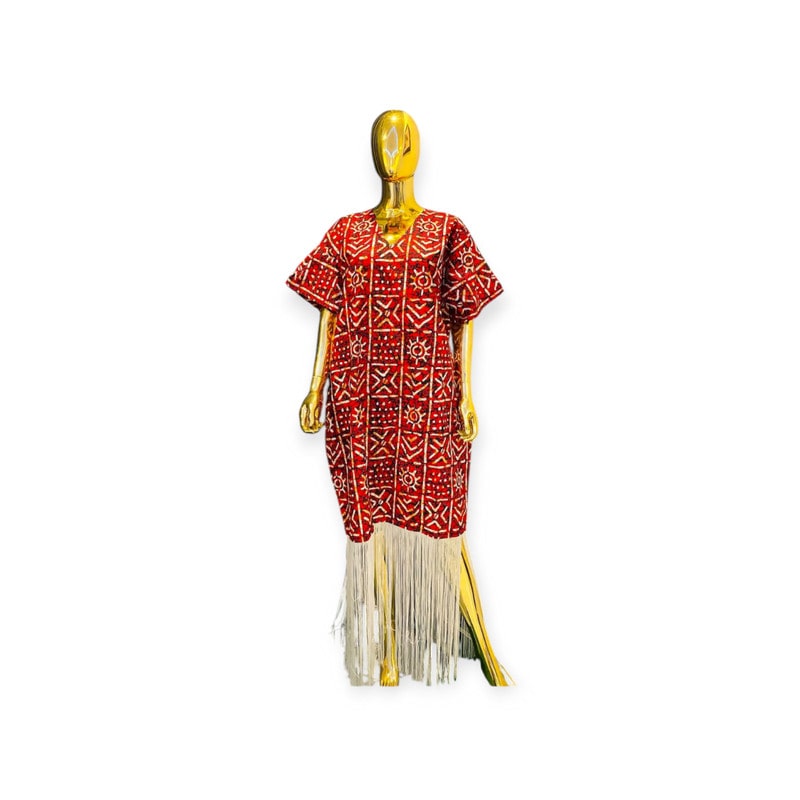 Fringe dress made with high quality cotton Ankara fabric.is available in blue, green, black and black colors. Any color of fringe you choose is acceptable.