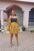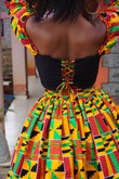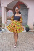 Cet ensemble de deux pièces vibrant vous fera vous sentir comme une reine avec sa jupe circulaire complète et notre haut court à épaules dénudées. .La jupe a une taille ajustable .Fabriquée à partir de 100% coton Ankara .Le haut peut être porté à l'épaule ou avec le moi